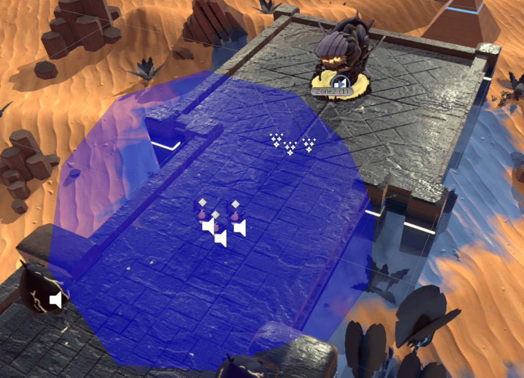 For the enemy cluster, we opted for a unit counter instead. The reason we chose this over a health bar is worth explaining. We realized early on that we didn’t want an indicator for each unit on the map. The screen would be completely swamped in some scenarios! So, we thought, “Let’s create an indicator per wave, easy!” But after more thought, we realized that waves could split. What happens then? We should have two indicators.