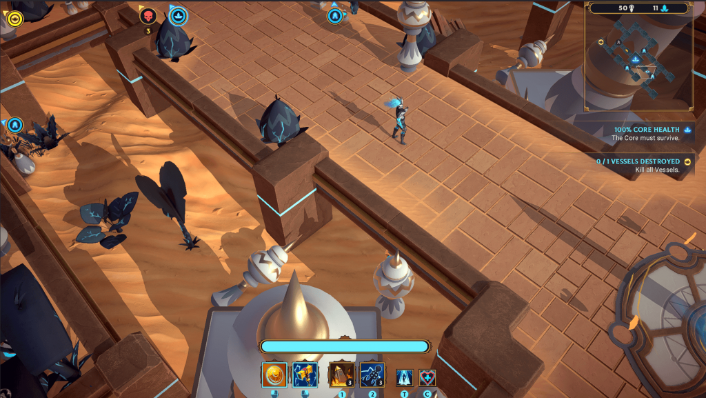 For each Vessel, enemy cluster, Super Tower, and the Core, you’ll see an indicator tracking each one. Except for the enemy cluster, each of them tracks how much health they have. When the Core or a Super Tower is under attack, the Indicator will blink, alerting you that providing support should be considered.